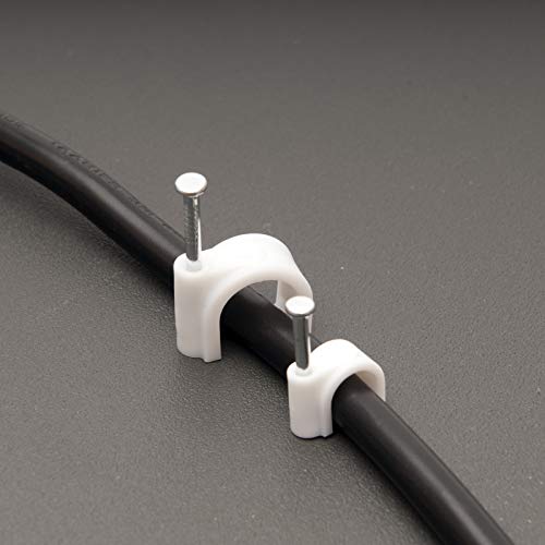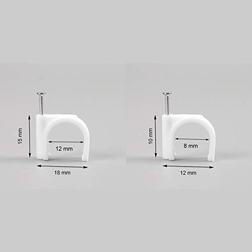 8mm 12mm Due confezioni da 100 pezzi di fermacavi per chiodi in acciaio spesso Clip per cavi in plastica PE Clip per cavi per telefono Chiodo a rete per fissare tutti i tipi di cavi (bianco)