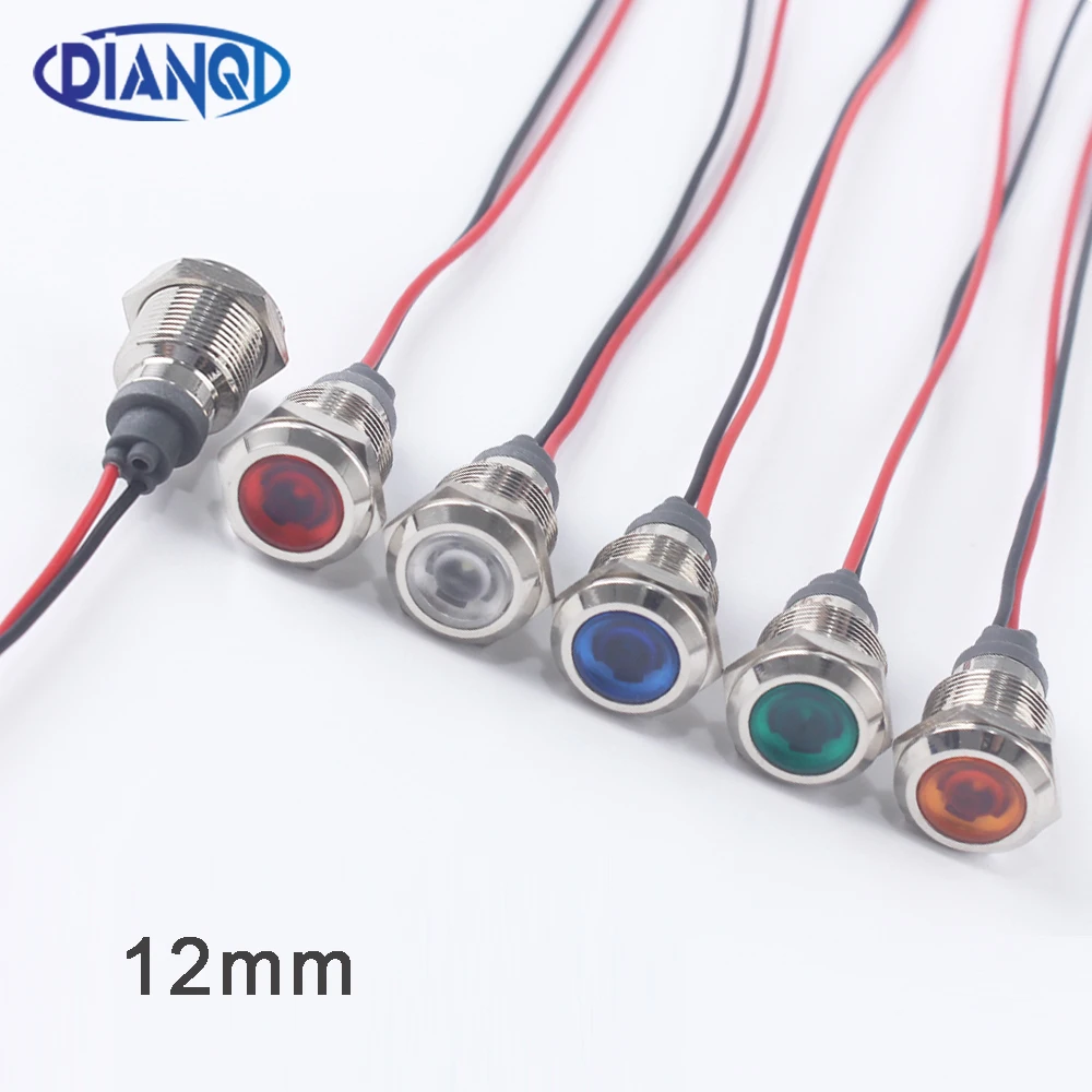 1PC 12mm LED Metal Indicator Light Instruction Signal Dot Lamp Red Yellow Blue Green White 3-6V 12-24V 110-220V