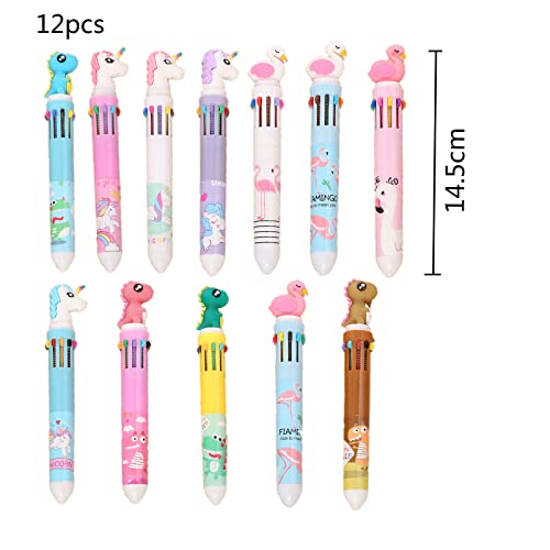 12Pcs 10-in-1 Penne a Sfera Multicolore Retrattili WOWBLING con Unicorno Dinosaur Flamingo Ufficio adatte per disegnare e scrivere Regalo per Bambini