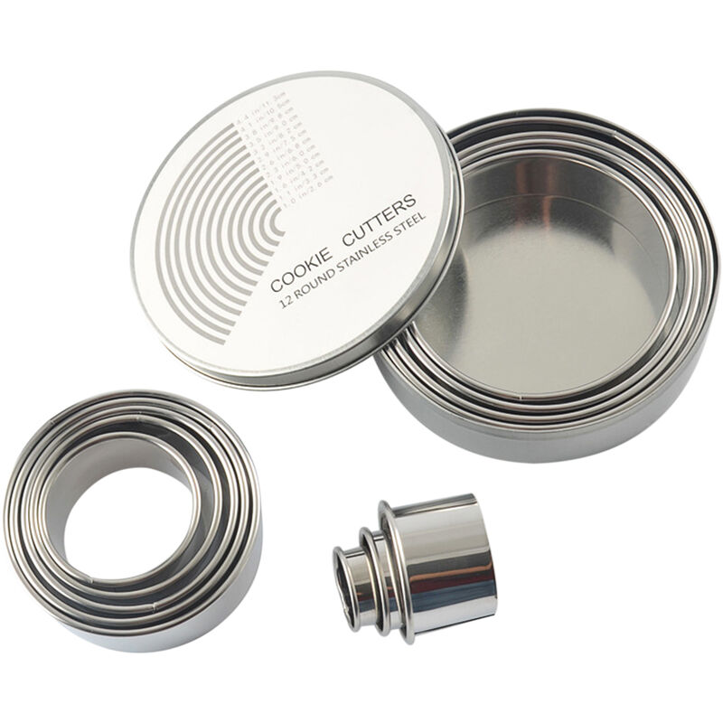 Descrizione: Set di anelli per mousse 12PCS Con custodia in metallo, il coperchio della scatola e contrassegnato con dimensioni, facile da usare. Questi stampi sono ottimi come stampi per mousse o per tagliare pasta per biscotti, fondente, frutta morbida, pane, torte, formaggio, ecc., Rendendo il cibo e la festa piu interessanti. Caratteristiche: [Utile] Le robuste frese mantengono la loro forma e tagliano facilmente l'impasto dei biscotti. Adatto per adulti o bambini. [Pratico] I set di formine per biscotti rotondi di diverse dimensioni sono perfetti per decorare i biscotti con i bambini. [Alta qualita] Gli stampi in acciaio inossidabile sono facili da pulire e il cordone saldato non si stacca. [Ampiamente applicabile] Gli stampi possono essere utilizzati per tagliare biscotti di Natale, muffin, pane, torte, formaggi, ecc. [Ottimo regalo] Se vuoi preparare un po 'di mousse di Natale e regalarlo alla tua famiglia, agli amici e ai vicini, questa e una buona scelta. Specifiche: Colore