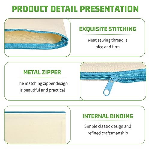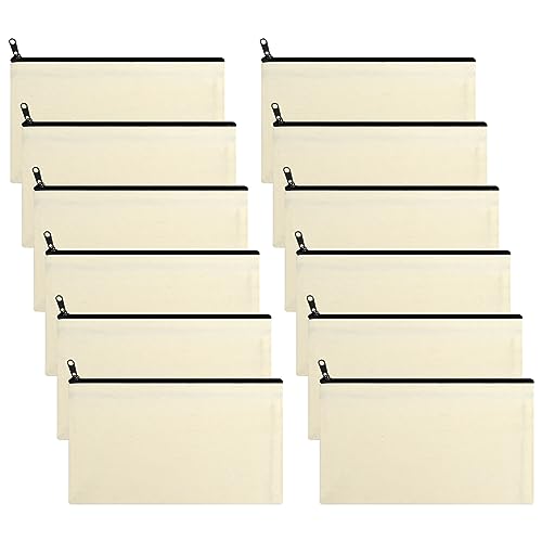 12PCS DIY Astuccio Stoffa Piccola, Sacchetti per Matite di Tela Vuoto, Borsa Cosmetica per Trucco in Tela Fai Da Te, Pochette Tela di Matite per Cancelleria Ufficio Viaggio 21x12cm (Cerniera Nero)