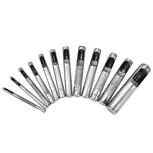 12Pcs Hole Puncher, acciaio al carbonio Leathercraft Hole Punching Hollow Round Punch Tool per perforare fori in pelle, tessuto, carta, guarnizioni, plastica, gomma