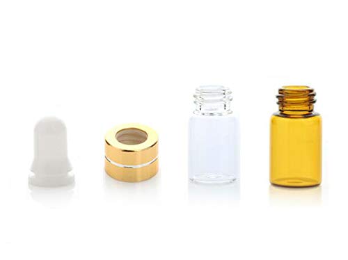 Confezione: 12 pezzi. Colore: ambra/trasparente a scelta. Materiale: vetro. Capacità: 1 ml/2 ml/3 ml.