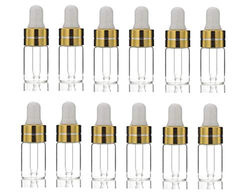 12PCS 3ml mini flacone di vetro trasparente con contagocce fiale di imballaggio per campioni cosmetici con tappo in gomma bianca campione di profumo cosmetico Supporto per liquidi