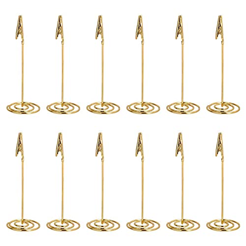 12pcs Porta Memo Clip Con Base,Portafoto Clip Da Tavolo Supporto Clip Memo Verticale Pinzette Segnaposto Porta Messaggio Da Tavolo Porta Memo Clip, Per Matrimonio Decorazioni segnaposto (oro)