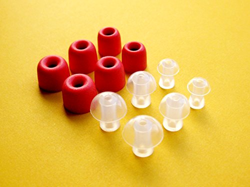 12pcs Set= 6pcs S/M/L Red Memory Foam and 6pcs S/M/L Noise Isolation Replacement Earbuds Eartips