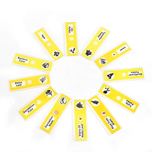 12Pcs Vetrini per Microscopio Preparati in Plastica Animali insetti Fiori Piante Campione per Bambini Studente Scienze Della Formazione[Giallo]