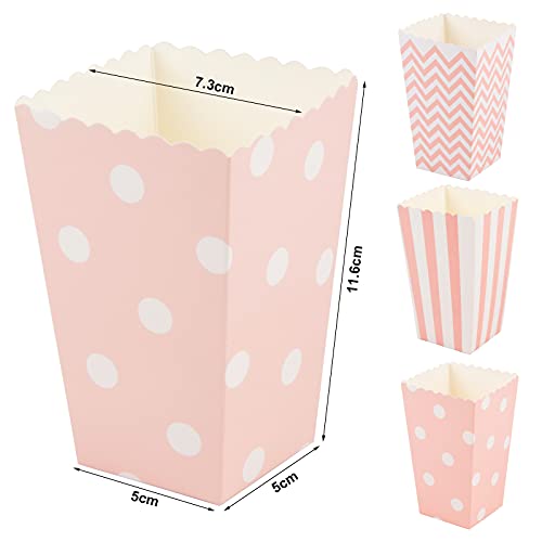 12Pezzi Scatole di Popcorn, Sacchetti di Pop Corn, Carta Contenitori di Popcorn, Contenitore per Caramelle, Dolci e Biscotti per Feste, Regalino Pensierino Festa Compleanno Bambini Movie Night (Rosa)