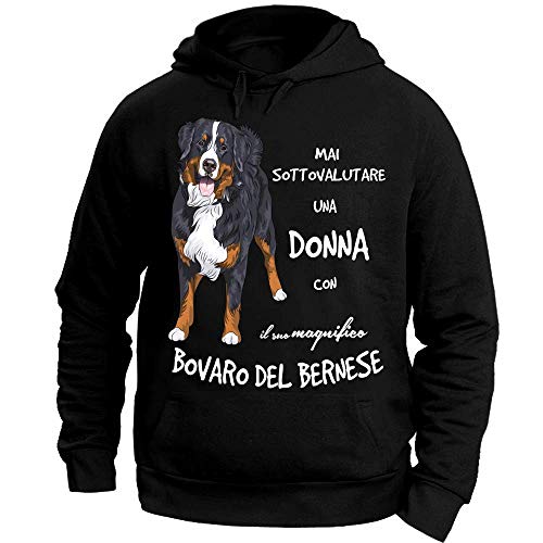 12Print Felpa con Cappuccio: Mai Sottovalutare Una Donna con Il Suo Bovaro del Bernese. Colore Nero Taglia XXL