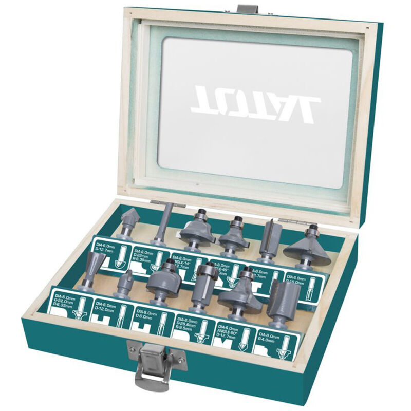 SET DA 12 FRESE TOTAL CARATTERISTICHE: Frese per FresatriceDiametro stelo 6mm IL SET INCLUDE: 3 frese dritte da 6mm,12mm,16mm1 fresa 1/2 a 90°1 fresa 1/2 coda di rondine1 fresa 32mm smussatura 45°1 fresa 1/2 per rifilatura2 fresa tonda da 1/4 e 3/81 fresa 1/4 Core box1 fresa 1/4 Core1 fresa R-4Valigetta per il trasporto inclusa Prodotto di qualità LA FATTURA VIENE EMESSA PER ACQUISTI SUPERIORI A 20 € E VA RICHIESTA NEL MOMENTO DELL' ACQUISTO