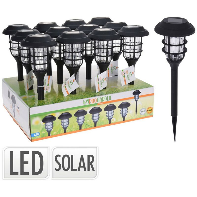 Ideale per giardini, vialetti e aree verdi. autonomia 6 ore, funziona senza fili, 1 batteria aaa inclusa, luce led. completa di puntale. colore nero.cm 12 x h.31
