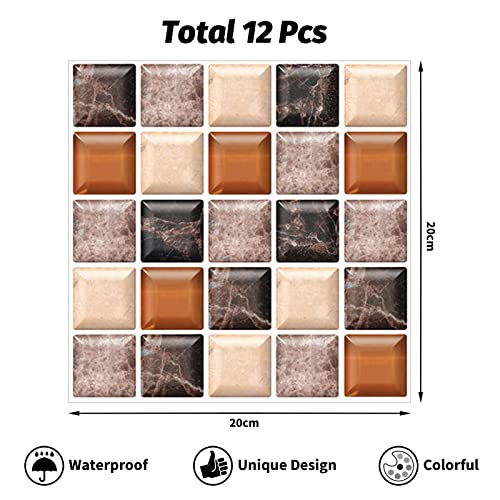 12Pz Piastrelle Adesive Cucina 20X20cm Mosaico Pellicola Autoadesiva PVC per Piastrelle Cucina Bagno Pareti Impermeabile Vinile Carta da Parati Decorativa