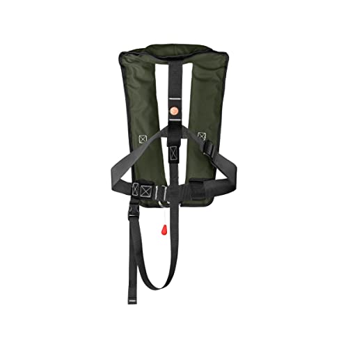 Set di 2 12skipper Giubbotti di Salvataggio Automatici 165N ISO con imbragatura, Verde Oliva