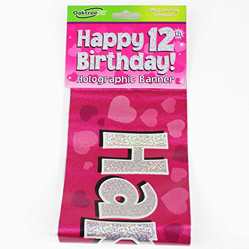 12TH Birthday Pink Holographic banner