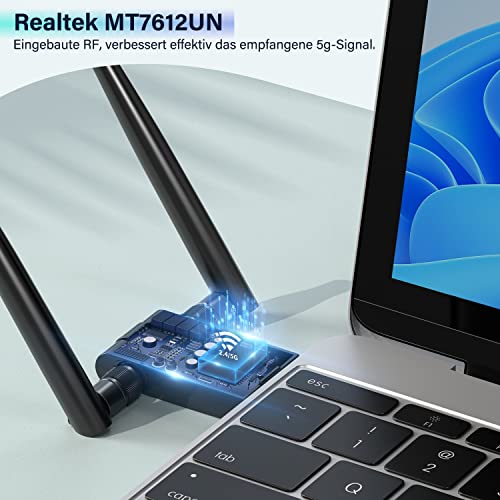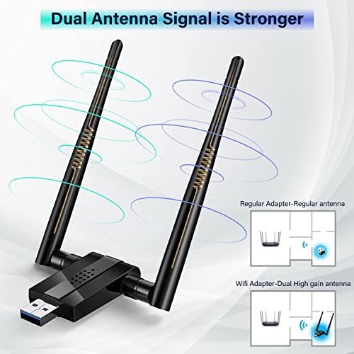 1300 Mbps WLAN Stick Adattatore WiFi USB 3.0 Adattatore WLAN PC, Plug & Play, 2.4G/5G Dual Band RF High Gain Antenna 5dBi, Wireless Network Adapter per Desktop Laptop Windows XP/Vista/7/8/10/11
