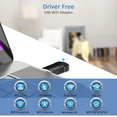 1300Mbps USB WiFi Dongle per PC-LinKAVEniR 5G/2.4G Dual Band USB WiFi Adapter, USB 3.0 PC WiFi adattatore per PC (CD-Free), 802.11ac Wave2 MU-MIMO Mini WiFi USB per Windows XP/Vista/11/10/8.1/8/7
