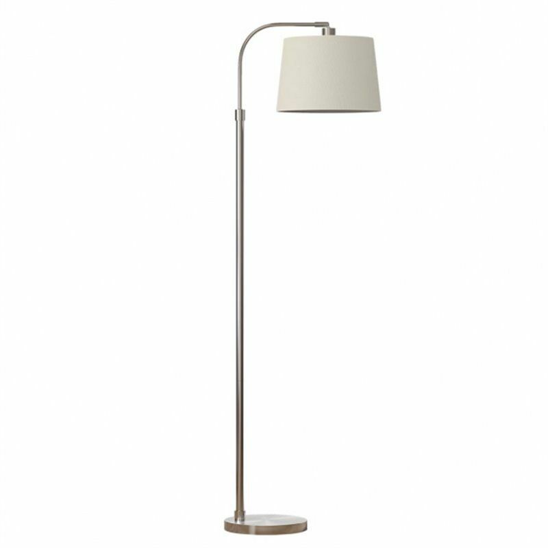 Lampada da terra serie MILAD in colore NICHEL. Realizzato in metallo e materiale tessile, paralume bianco. Si distingue per la sua forma curva che lo rende facilmente adattabile a qualsiasi spazio. Schermo luminoso e regolabile, con dimensioni 161X33X46 & lt, 58 centimetri, e il suo schermo è 23x33x28cm, con una base rotonda. Ha un portalampada E27. Lampadina non inclusa. Modello disponibile anche nel colore Leather.
