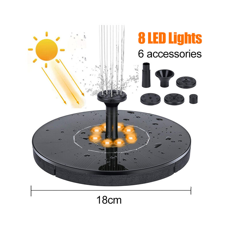 Specifica Sollevamento massimo: 90cmPortata massima: 200L/hParametri della pompa: DC 4.5-12VPannello solare: 7V/1.7W monocristallinoDimensioni del pannello solare: diametro 130mm, 160mm, 180mm. Una varietà di opzioni di ugelli può essere utilizzata per cambiare la forma di spruzzo di diverse fontane Altezza spray acqua: 35 -- 65cm, collegare diversi ugelli, l'altezza dello spruzzo d'acqua sarà diversa Avviso1. Le luci si accenderanno di notte per spruzzare l'acqua e durante il giorno, solo l'acqua sarà spruzzata senza illuminazione2. Luci a LED colorate, il colore della luce è a volte sincronizzato, a volte non sincronizzato, non c' è motivo No led Circa La Spedizione 1. La maggior parte degli articoli che spediremo entro 1-7 giorni dopo il pagamento.2. A causa di differenze nelle abitudini che eliminano i periodi in paesi individuali o fattori instabile (e.g. Sciopero locale, condizioni meteorologiche estreme, ecc.), non possiamo garantire completamente i tempi di consegna di tutte