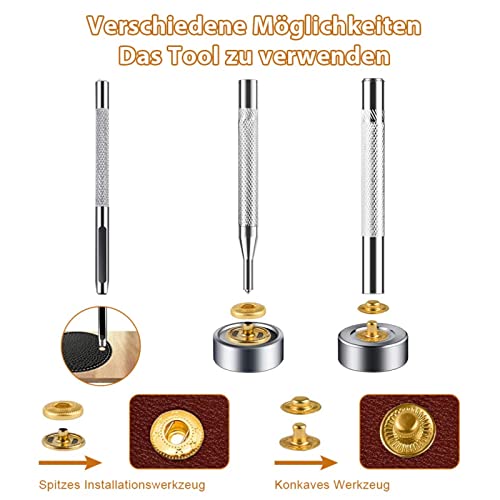 132pcs Bottoni Automatici in Metallo di Bottoni con 4pcs Strumenti, Bottoni Automatici a Pressione per Jeans Pelle Cuoio e Tende, per Abiti Decorazione Riparazioni Artigianal DIY Bottoni