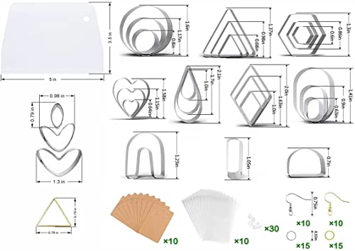 ❤【132PCS POLYMER CLAY CUTTERS KIT】: Package includes 132 pcs of polymer clay cutters (8 shapes in different sizes and 4 popular irregular shapes),1pcs clay scraper,20 pcs of earring hooks and 30 pcs of gold and silver jump rings,30 pcs of earring backs,10 pcs of earring cards and self-sealing bags.