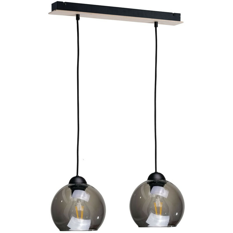 Keter Lighting - 1339 Plafoniera a sospensione in legno nero, 50 cm, 2x E27 | Finitura: nero | Altezza: 120 cm | Lunghezza: 50 cm | Larghezza: 15 cm | Tipo di lampada: E27 | N. di lampade: 2 | Lampadina inclusa: no | Dimmerabile: Sì - Sono necessarie lampadine dimmerabili | Potenza (max): 60 W