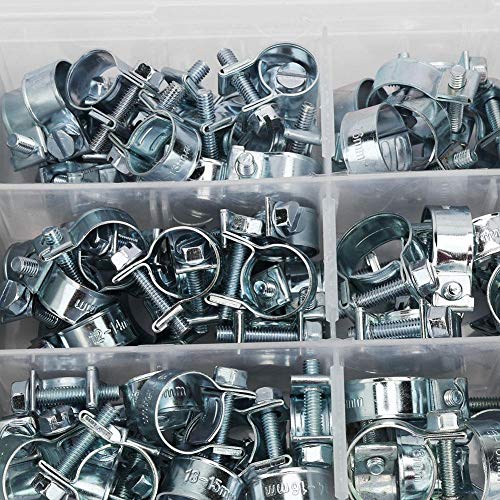 MATERIALE DI ALTA QUALITÀ: fascette stringitubo per carburante realizzate in acciaio dolce zincato con una vite esagonale standard da 7 mm. Gamma di dimensioni da 8 a 18 mm.