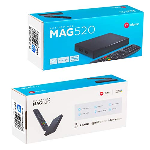 ✅ Il MAG520 è un potente set top box Linux. È dotata di un chipset Amlogic S905X2, una CPU ARM Cortex-A53 più efficiente del 25% e una GPU migliorata