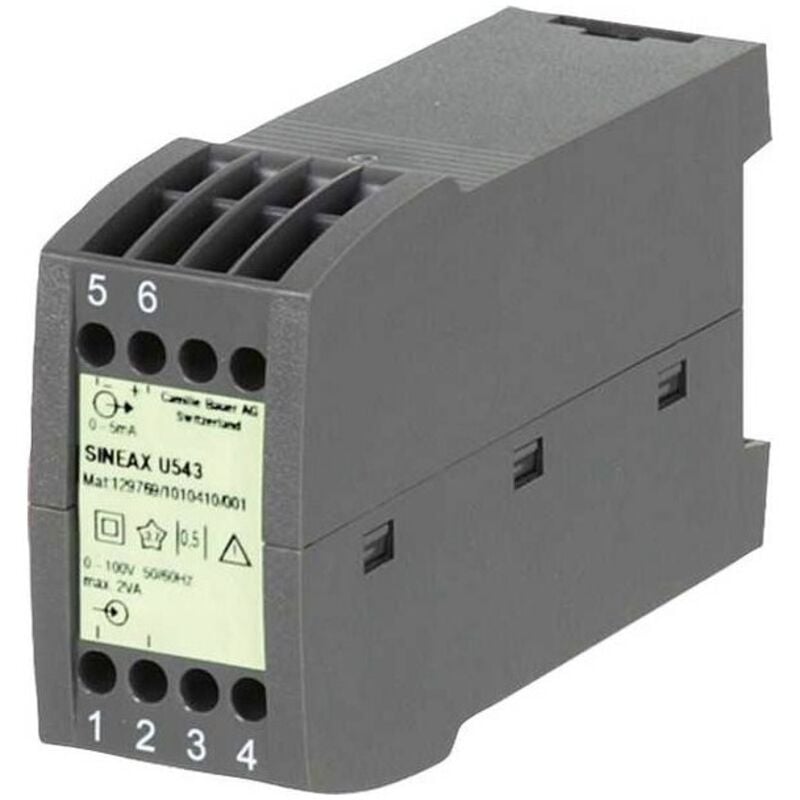 Dettagli tecnici Marca Camille Bauer Trasmettitore per tensione alternata, senza collegamento per energia ausiliaria tipo Sineax U 543 Il convertitore SINEAX U 543 forma una tensione alternata sinusoidale in un segnale di corrente continua in rilievo, che si comporta in modo proporzionale al valore misurato. Il trasmettitore funziona senza energia ausiliaria e soddisfa i requisiti e le normative più importanti in materia di compatibilità elettromagnetica EMC e sicurezza (IEC 1010 o EN 61 010). È stato sviluppato, realizzato e collaudato secondo la norma di qualità ISO 9001. Testo tradotto automaticamente. Caratteristiche Principio di misura: Processo raddrizzatore ingresso di misura: Tensione alternata sinusoidale, misurazione della media aritmetica, calibrazione del valore effettivo intervallo di misura 0... 120 V AC, uscita di misurazione 50/60 Hz unipolare 0... 20 mA senza collegamento di energia ausiliaria, minore sforzo di cablaggio standard GL (Germanic Lloyd) / alloggiamento adatto