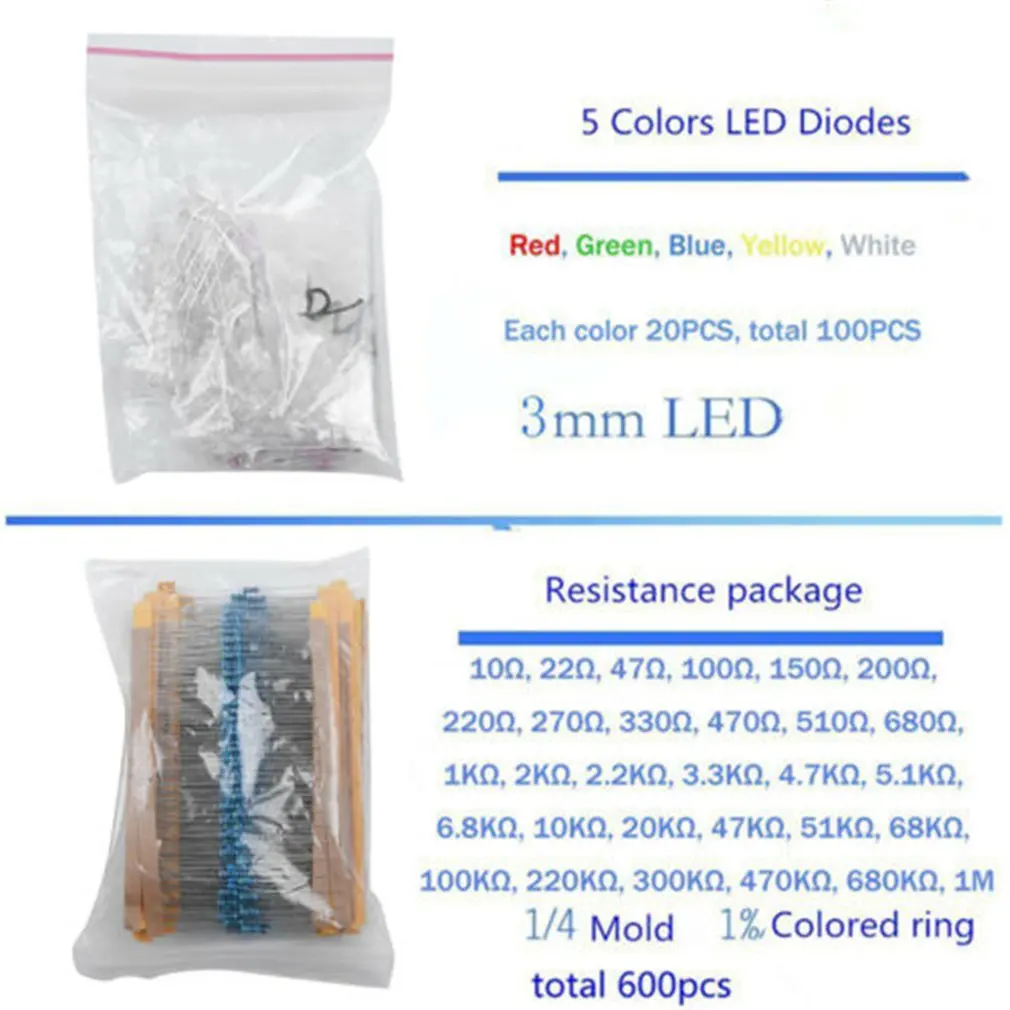 1390PCS/lot Electronic Components LED Diode Transistor Capacitor Resistance Kit 5-Color LED diodes Set