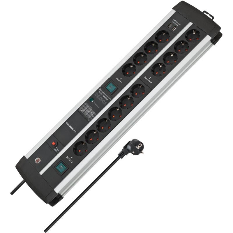Brennenstuhl Premium-Protect-Line Ciabatta con protezione da sovratensione da 120.000 A con funzione di ricarica USB 14 vie DUO - 1392000232 codice articolo:1392000232 EAN:4007123662951 Peso della Spedizione:2,12 kg Descrizione del prodotto: La presa multipla Premium Protect Line 14 con cavo da 3 m convince per la sua qualità e sicurezza in tutti i settori. La presa multipla è dotata di protezione contro le sovratensioni, che protegge i tuoi dispositivi da interruzioni nella rete elettrica, come sovratensioni, fulmini indiretti o disturbi di linea, con una corrente di dispersione totale massima fino a 120.000 A. Inoltre, grazie a un filtro integrato, è garantita una protezione di alta qualità contro le interferenze RF. Non solo ha una maggiore protezione contro il contatto, ma convince anche per le seguenti proprietà: Ideale per i tuoi dispositivi elettronici di intrattenimento (sistema TV, PC, giochi...) 2 interruttori di sicurezza illuminati, bipolari commutabili on/off: 1x 4 prese