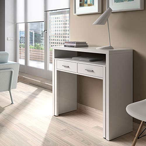 13Casa 004582A Scrivania Allungabile, Melammina, Bianco, 87 x 98 x 36 cm
