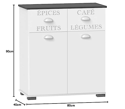 13Casa Crissy B3 Buffet, melamina, White, 90 x 80 x 40 cm