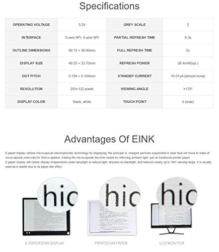 Comes with development resources and manual (examples for Raspberry Pi): No backlight, keeps displaying last content for a long time even when power down
