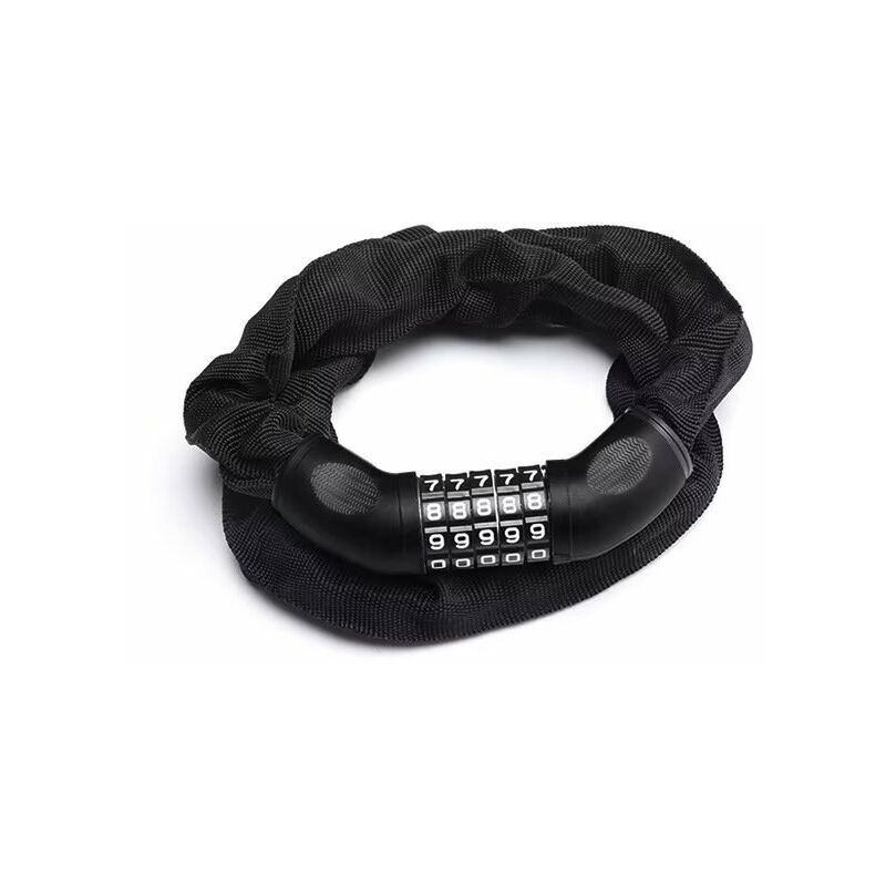 Finitura nera Lucchetto a catena in acciaio temperato con rivestimento in nylon morbido Lucchetto con combinazione a 5 cifre Lucchetto per bici con catena da 105 cm e 5- lucchetto con combinazione di cifre Proteggi la tua bici dai ladri con questo lucchetto con cavo da 105 cm con combinazione a 5 cifre. Questo lucchetto è eccezionalmente pratico e rassicurante quando devi mettere al sicuro la tua bici, a casa, al lavoro o durante una sosta durante un'escursione. Usa il cavo per collegare facilmente la tua bici a se stessa (ruota al telaio), a un'altra bici o a un oggetto fisso per una maggiore sicurezza. Quando non in uso, il cavo flessibile può avvolgere ordinatamente il telaio della bicicletta per riporlo comodamente. Il cavo può essere utilizzato anche per fissare il casco, lo zaino, la valigia, ecc. Dettagli Lucchetto con cavo per bici da 105 cm Acciaio resistente al taglio Acciaio resistente al taglio Elegante finitura nera Combinazione a 5 cifre, riprogrammabile Istruzioni per