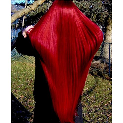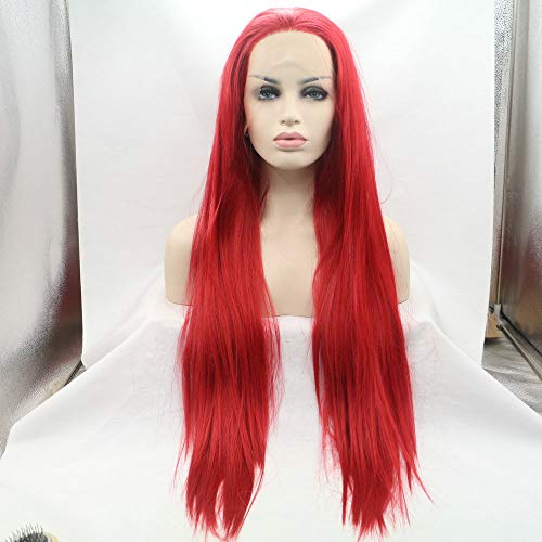 13x3" mezza mano legata lunga mano lunga dritta calda rossa parrucche sintetiche in pizzo anteriore per donne parrucche di trucco delle signore parrucche di trucco della sirena sicura al calore Cosplay Partito Halloween Parrucche