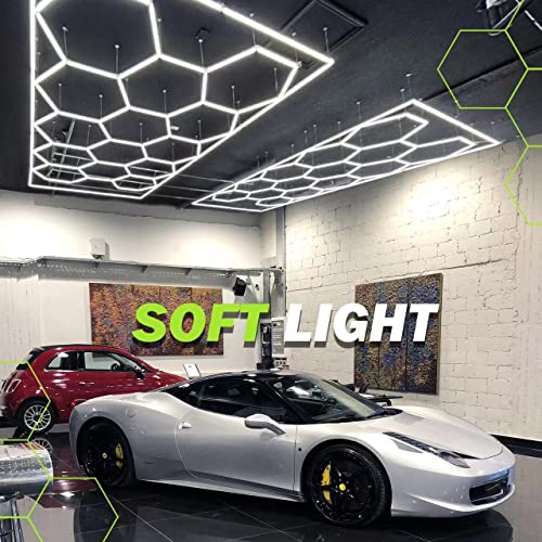 14-Hexagon Plafoniere Led,6500K 534W 60000LM, Ultraslim Collegabili, IP54 Impermeabili Led Officina Tubo per Autolavaggio,484*243cm, Led Garage Ufficio Seminterrato Magazzino(Bianco Freddo)