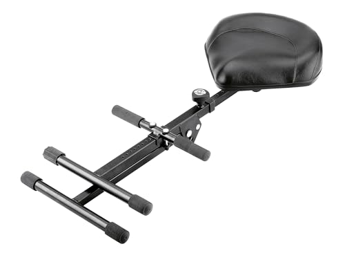 K&M 14045 Sit-Stand nero - acciaio, similpelle - sit-stand pieghevole per musicisti - seduta larga, poggia-piedi