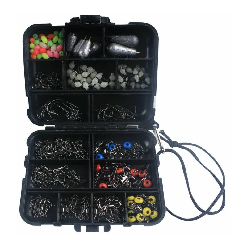 140 pezzi di accessori per la pesca possono soddisfare diverse esigenze di pesca, è un ottimo regalo per gli amanti della pesca. Può soddisfare tutti i tipi di esigenze di pesca < p>Gamma completa di quantità e varietà Incluso anello del personaggio, connettore, gancio a manovella, perline che bloccano la luce, platine di piombo, Sea Beans, Luminous Gourd Swivel, ecc. La scatola è realizzata di materiale plastico ABS ad alta capacità a 22 griglie, durevole e resistente alle cadute.