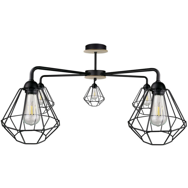 Keter Lighting - 1412 Foskal Semi Flush Light Nero, Legno, 70 cm, 5x E27 | Finitura: nero, legno | Altezza: 38 cm | Lunghezza: 70 cm | Larghezza: 70 cm | Tipo di lampada: E27 | N. di lampade: 5 | Lampadina inclusa: no | Dimmerabile: Sì - Sono necessarie lampadine dimmerabili | Potenza (max): 60 W