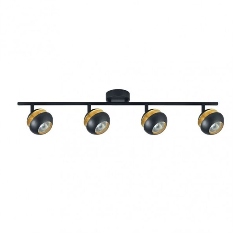 Strip con quattro faretti della serie BEETHOVEN di colore NERO/ORO. Realizzato in metallo con quattro portalampada GU10. Lampadine non incluse. Design moderno e originale con faretti tondi e articolati verticalmente, con una rotazione orizzontale di quasi 360°, permettendo così di orientare i punti luce verso qualsiasi zona della stanza. Le sue dimensioni sono 14X69,5X8,5 centimetri. Modello disponibile anche in bianco/argento. La collezione può essere completata con la versione di striscia a tre luci, striscia a due luci, plafoniera a tre luci, sospensioni a tre e quattro luci e lampadina a una luce.