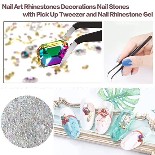 1440pezzi strass con 2 gel adesivo,Formati Rotondo Gemme di Cristallo 3 pezzi di pennelli per nail art pinzette per nail art e progetti fai da te