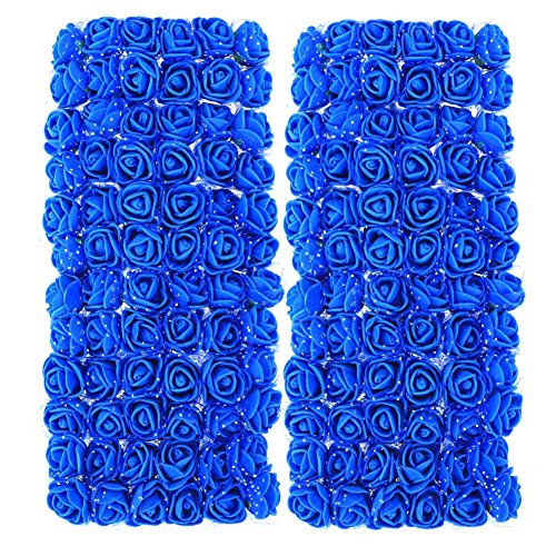 UEB 144pcs Teste di Rose in Schiuma Mini Rose Finte per Decorazioni Bouquet Fiori Artificiali Decorazione per Matrimonio Festa Auto Casa DIY Ghirlanda di Fiori da Sposa (Blu)