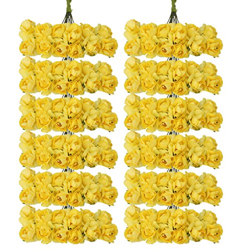 144pz Carta Artificiali Rosa Boccioli Di Fiori Mini Partito Decorazione Feste - Giallo