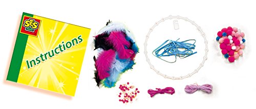 Ruota di plastica acchiappasogni, filo, pompon in diversi colori, piume, perline, ago per cucire, nastri