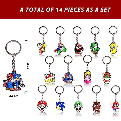 14Pcs Ma-rio Portachiavi, Cartone Animato Portachiavi, Portachiavi Carino per Bambini, Regalo di Compleanno per Ragazzi e Ragazze, Forniture per Feste in Regalo (A)