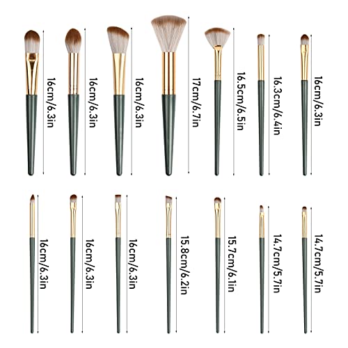 14Pcs Pennelli Trucco Professionale Pennelli Make Up Fondotinta Verde Scuro Incluso Pennello per Polvere Sciolta, Pennello per Ombretti, Pennello per Sopracciglia, Ecc. (Spazzole con borsa)