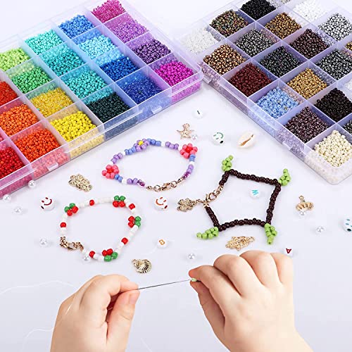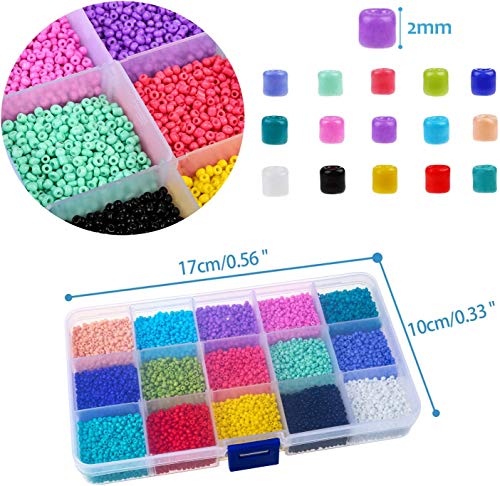 15000pcs15 Colore 2mm Perline per Braccialetti,Set Perline per Bigiotteria Gioielli Collane Phone Beads Fai da te Bambini Adulti,Perline Vetro Colorate con Perline Lettere Cordino Elastico Accessori