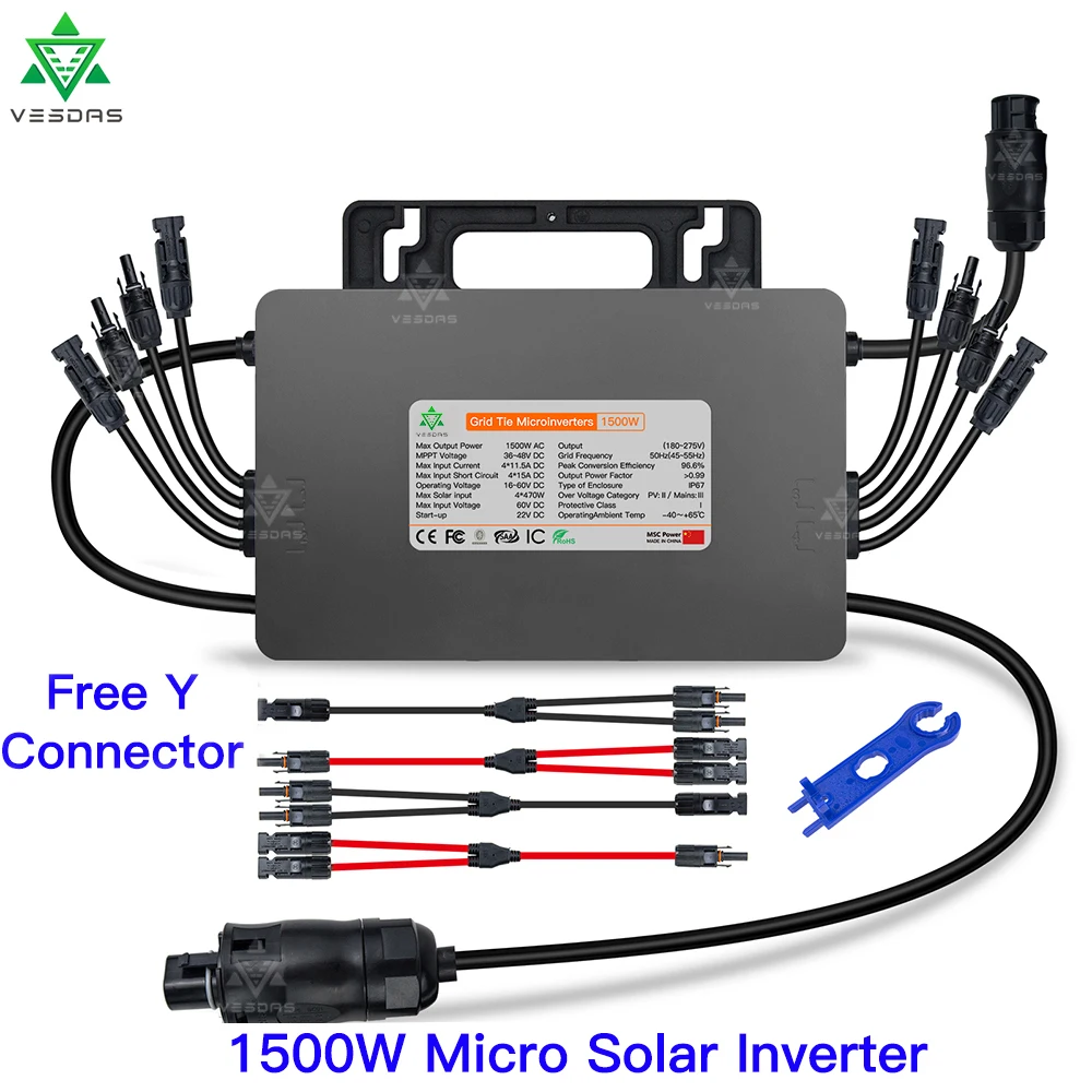 1500W Micro Solar Inverter Dual MPPT On Grid TIe Inverter Inversor Microinverter 16-60VDC to 230VAC For 4*375 Solar Panel