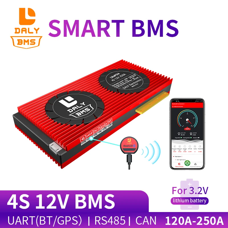 4S 12V 150A 200A 250A Daly Smart Bluetooth BMS For 3.2V LiFepo4 Battery cell pack 12V100AH 120AH 150AH 180AH 200AH 300AH 400AH