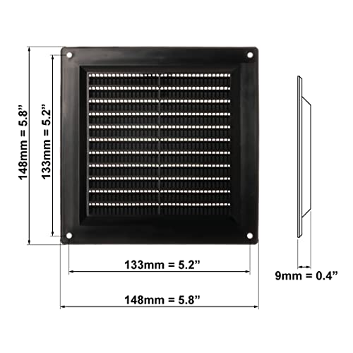 150x150mm Griglia di Ventilazione con Zanzariera - Griglie d'Aerazione - Plastica ABS Nero